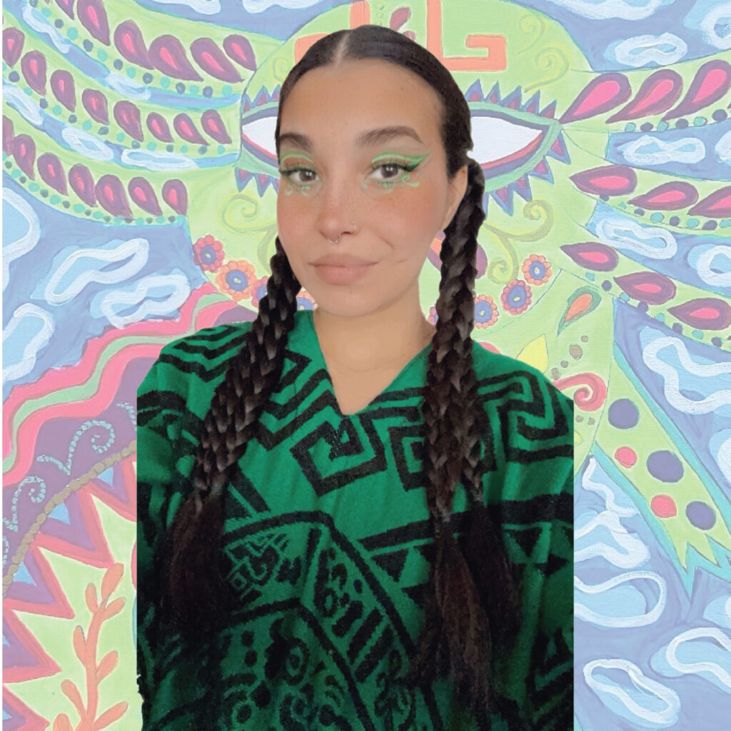 Khaila Carr draws artistic inspiration from a blend of color, psychedelia, tattoos, and nature. As a queer, Filipino-American woman, she embraces autobiographical art and uses her own experiences to reflect on the duality of femininity; hard but soft, a flower petal on a leather boot.