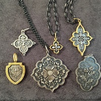 NYC-based artist and jeweler Erica Molinari creates sterling silver, 14K and 18K gold medallions to commemorate life’s most momentous moments. A selection of her work will be on display at On Paper in April. They can special order medallions in many options, which are perfect to celebrate Mother’s Day, graduation and weddings. Medallions are two-sided, some with inspirational Latin and English quotations. All of her work has an incredible level of detail and workmanship that reflect a modern edge with a nod to the Italian Renaissance.