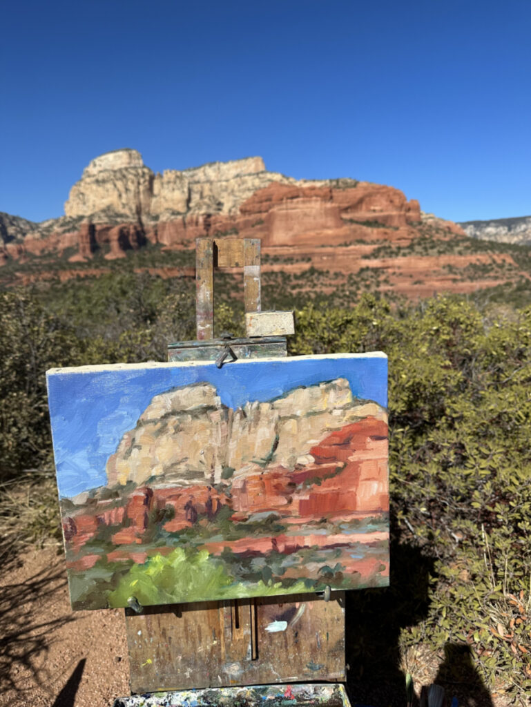 Karan LaValley’s exhibition at the Little Blue House Gallery is sure to intrigue the curious adventurer. These selected paintings reflect the artist’s travels throughout the southern and western areas of the United States, including Rachel’s Knoll, a beautiful, rural area in Sedona.