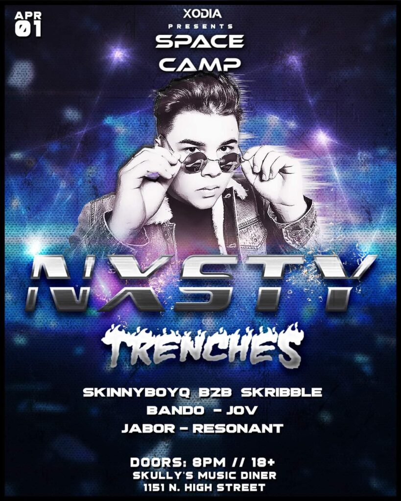 Stop by Skully’s Music-Diner during the April Gallery Hop for SPACE CAMP: A monthly gathering of talented local Djs featuring the music styles of Dubstep. Riddim, Trap, and EDM.