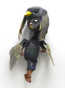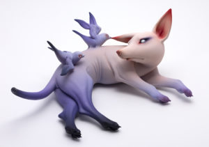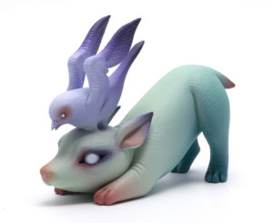 Erika, you’ve said you like that your figures are inspired by creatures and characters in dark films. For this show, Sherrie’s summary explains that you explore “unlikely friendships through peaceful acceptance.” What are the unlikely friendships you’re exploring? How have they helped you accept feelings of fear and anxiety?
