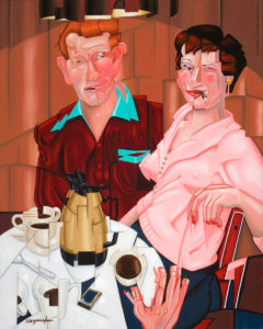 In addition to his uniquely characteristic style, Wozniak’s work is also known for its overarching theme, which often depicts enjoying life’s small diversions. He credits this to his tendency of drawing on fond memories and relying on photographs of family gatherings like birthdays and holiday celebrations to paint his subjects, which are frequently seen to be merry-making through “hedonistic pleasures” such as eating and carousing. “Rather than just painting a bowl of fruit, I paint a bowl of fruit with a bottle of wine,” he said. “I want people to come away from looking at something that I’ve done and be intrigued.”