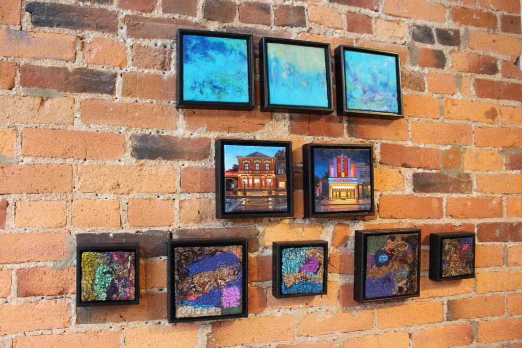 Painter Jessica Wojtasek agrees that art is a special gift because each piece is distinctive. “When you give a work of art as a gift, you are giving something 100% unique,” she said. She also feels artworks as gifts have more dimension since they directly support artists, and the local art culture in Columbus. She feels this show is a great way to introduce people to collecting art because the works are a smaller investment that work with many budgets. She loves her piece “The Book Loft” because of how much she enjoyed the process of painting it.
