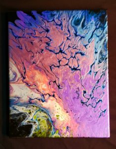 Torso will feature the art of Kris Littler, who works specifically in acrylic paint pours and acrylic abstract painting. Littler is a native of Springfield, Ohio, but moved to Columbus over 20 years ago. He explains his forté of paint pouring as “a painting method that uses acrylic paint and pouring medium to create organic, free form painting with rich, vibrant swirls and cells of color, without the use of paint brushes. The work involves chemistry, multiple techniques and combining colors in varying proportions, and no two will ever be the same.”
