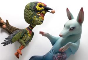 During the August Gallery Hop, Sherrie Gallerie will feature work by ceramic artists Calvin Ma and Erika Sanada. Calvin and Erika both create flawlessly sculpted animals or figures as main characters in their work. Their narratives follow these characters as they grapple symbolically with the concept of fear and anxiety. The two met while receiving their MFA degrees from Academy of Art University, and their work has been exhibited and published worldwide. They currently live and share a studio in San Francisco, California.