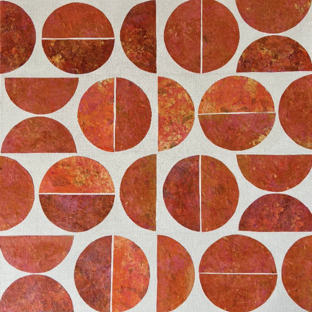 Susan Rossiter’s acrylic and handmade paper assemblages are inspired by mid-century textile artists. In this exhibition, the artist explores the charisma inherent in repetition, pattern and design. Inspired by the colors, shapes, and patterns of the 50s, 60s and 70s, Ms. Rossiter’s works are described as both modern and retro. Her pieces are the result of joyful experimentation with texture and composition, incorporating acrylics, handmade paper assemblages and unique and whimsical collage elements.