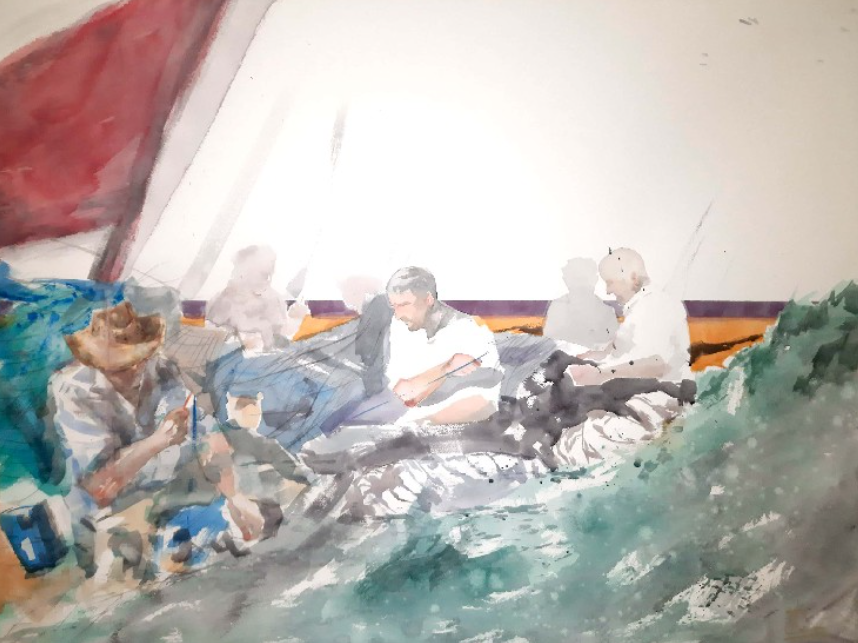 The theme of this show mixes paintings rendered in situ (from life) and others rendered from the artistâs photographs. The sketch of Gregory, a homeless man with diabetes the artist saw on High Street, talks about honoring the humanity in all of us. The fishermen sewing the net highlights the philosophy of the Almadraba fishing technique from Spain, which uses an environmentally responsible approach to capture adult tuna. Pirates Night refers to everyday moments we can experience again in the company of friends, thanks to the lifting of COVID. Through this eclectic mix of themes, the complex thinking of the artist is revealed, including everything that attracts him and that he wants to share.