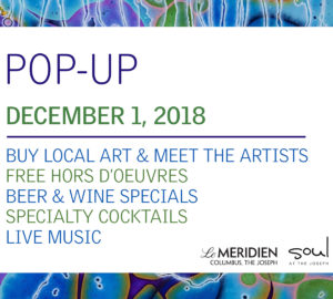 Le Meridien Columbus, The Joseph is partnering with ArtPop to give Columbus, Ohio a new art shopping experience. On Holiday Hop from 6:30pm to 9:30pm, browse local pieces and meet the artists while enjoying a selection of free hors d’oeuvres from The Guild House and live holiday music by the George Barrie Band. Shoppers can also indulge in a glass of wine, a craft beer, or featured craft cocktail from Soul Bar and mingle with other art aficionados. Artists at the event include Amandda Leigh Tire, Alissa Ohashi, Cassidy Rae Marietta, John F. Grosvenor, Duartes Collective Group, David Michael, Kate Morgan, and Stephanie Rond.