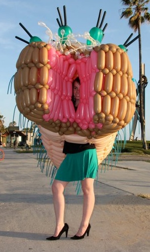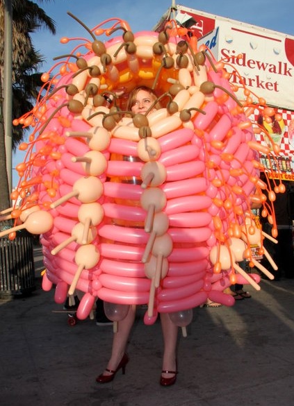 From June 22 through July 12, the high school students will learn the basics of art and create interactive balloon sculptures with Hackenwerth to showcase at Gallery Hop. The sculptures, which Hackenwerth calls “Megamites,” look like blown-up versions of the type of organisms that you would see while looking through a microscope. The colorful creatures are worn like costumes and brought to life to interact with bystanders and other Megamites.