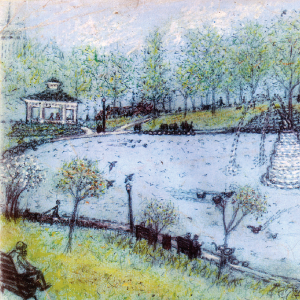 Malcolm J, a Short North fixture for close to two decades, used his his keen observational skills to capture neighborhood scenes like Goodale Fountain.