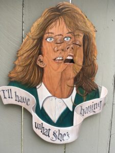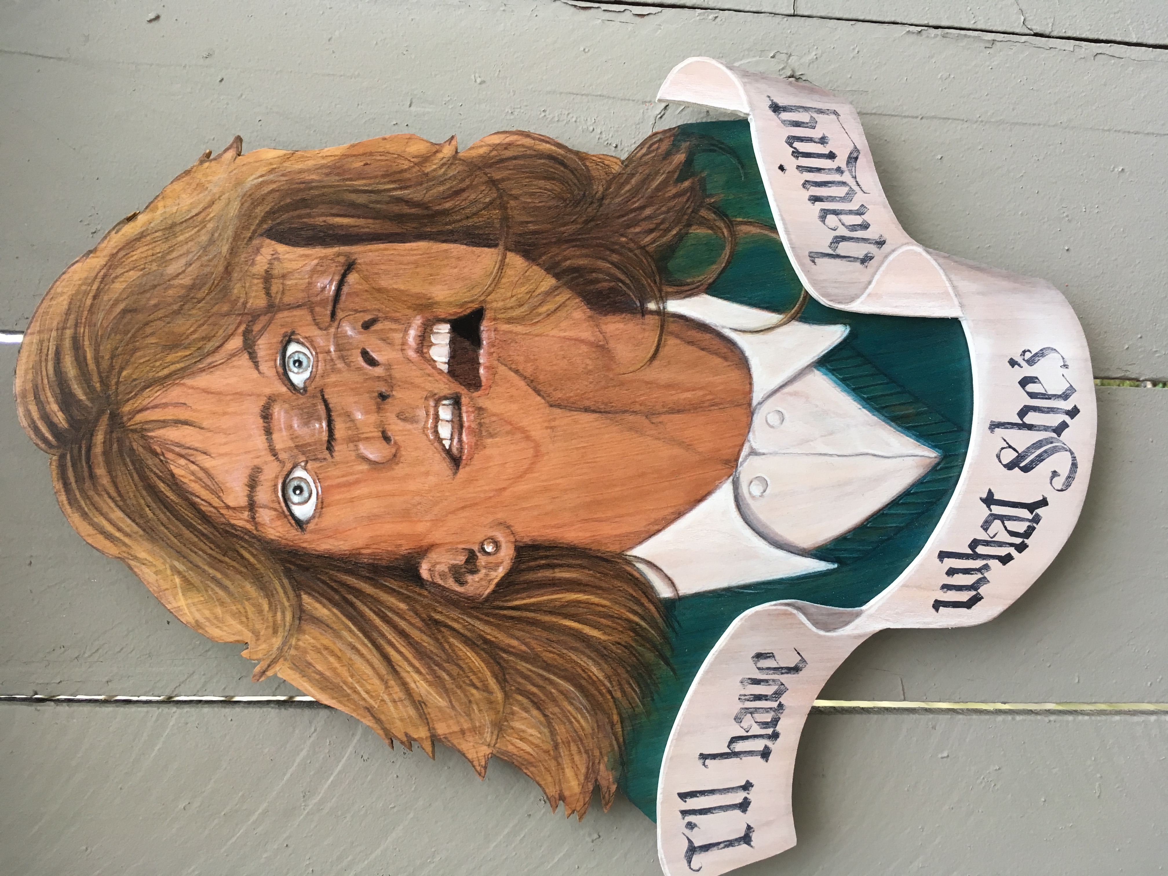 Pies & Pints‘ Artist of the Month is artist and musician, Benjamin Lamb. He combines illustration with his love of woodworking and wordplay to create layered wood compositions that poke fun at current events and mash up various pop culture icons. He has been exhibiting his work in solo and group shows in Columbus since 2008, and was recently profiled in the music documentary “Who Is Lydia Loveless?” You can see his work online at instagram.com/blammo70.