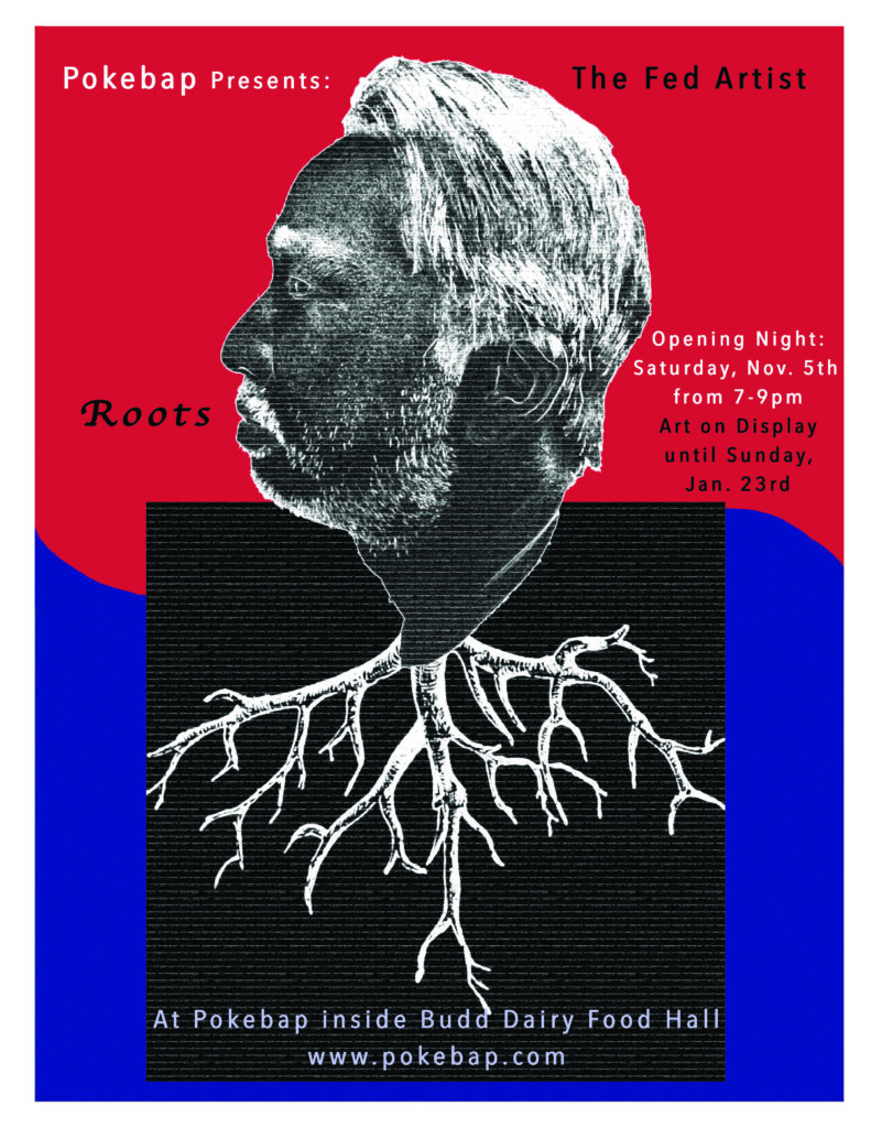 The Fed Artist by Pokebap will be featuring the show “Roots” during the January Gallery Hop. Seas Kim is the owner of Pokebap and his grandmother planted the idea of rooting heritage and precision in both cooking and creating. His grandmother rooted him into who he is as a person, as a business owner, and the reason why he created Pokebap. The show will be on display from now until January 23.