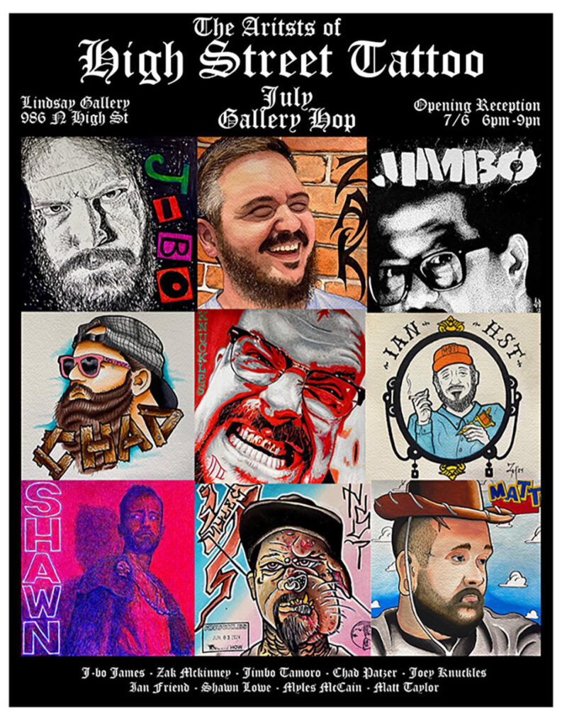 Lindsay Gallery is teaming up with High Street Tattoo in July for an Art Show that will explicitly be exhibited in the gallery space. Opening Reception for the exhibition will be 7/6 from 6pm – 9pm.