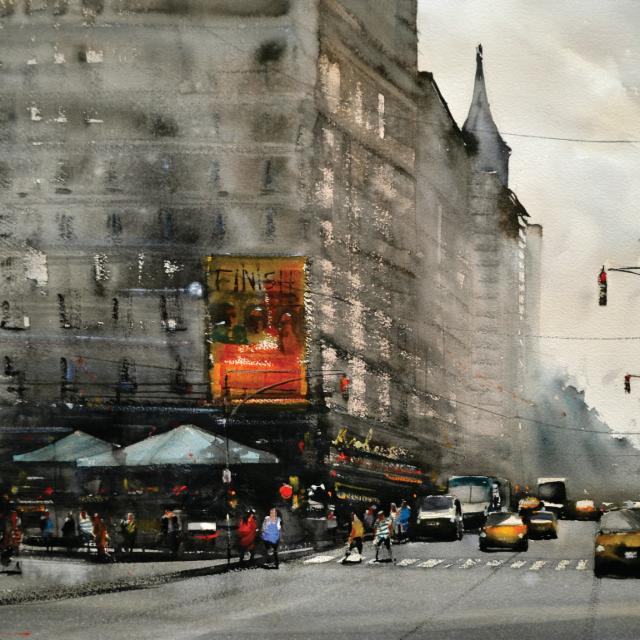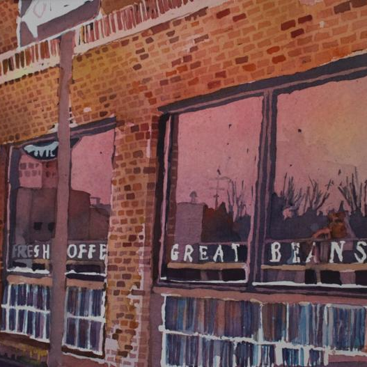 Hosting a new collection of paintings, alongside watercolorist Cody Heichel at Marcia Evans Gallery, Sharon Weiss premiers local artist Michael Guinane focused on sights and experiences from his most recent travels and scenes from urban Columbus.
