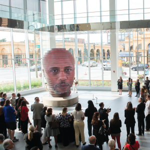 Visit the SMG-managed Greater Columbus Convention Center during Gallery Hop to view the largest contemporary collection of central Ohio art, featuring the interactive “As We Are” sculpture by Matthew Mohr. This 14-foot-tall, three-dimensional universal human head sculpture contains a photo booth capable of shooting 3-D pictures. After each photo shoot, the guest emerges from the booth to see his or her portrait projected as the enlarged face of “As We Are.” This is a great selfie opportunity, too! Guided tours will not be offered during the Gallery Hop in March due to the 200,000 attendees expected for the Arnold Sports Festival.