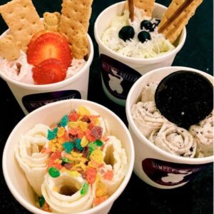 You can’t go wrong with custom, housemade ice cream roll recipes from Simply Rolled. Choose from their many signature rolls or create your own. They’re currently offering both delivery and curbside pickup options.