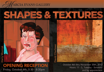 Marcia Evans Gallery presents "Shapes & Textures" featuring works by David Charlowe and Harry Wozniak.