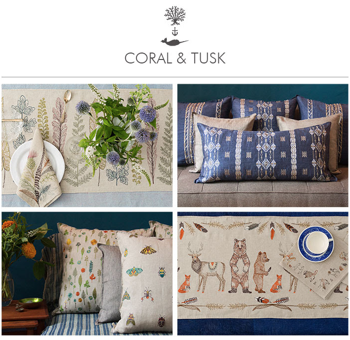 For the November Gallery Hop, Happy Go Lucky Home is featuring Coral & Tusk, founded in 2007 by Stephanie Housley. Coral & Tusk embodies the spirit of luck and good fortune. Inspired by a love of animals, travel, and adventure, Coral & Tusk invites you on a journey past hungry whales in the ocean depths all the way to mustachioed tamarinds smiling in the treetops. First enchanted by the natural world during childhood trips to the Eastern seaboard, Stephanie’s frequent travels now span the globe. Magical experiences everywhere from Wyoming to Nepal inform the imagery and humor behind Coral & Tusk’s designs.