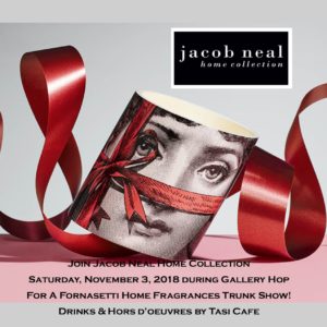 Jacob Neal Home Collection will feature Italian artist Pierro Fornasetti with a Fornasetti Home Fragrances Trunk Show. Drinks and hors d’oeuvres will be provided by Tasi Cafe. The event is free and open to the public.