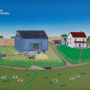 Patton (1921-1999) grew up in the tiny Muskingum County village of Rix Mills, Ohio. It was a place where kids walked to a one room schoolhouse, worked in the fields and spent their playtime outdoors in the beautiful Appalachian foothills. Patton went on to be a B-17 pilot in WWII and had a long career in education. When he went back to Rix Mills in 1985 he discovered that the countryside he loved had been dramatically changed by strip mining. The hill against which his village nestled had been entirely stripped away. Fearing that the way of life he knew would be forgotten, Patton began putting his memories on canvas. With no formal training, he produced over 500 paintings that so touchingly capture a time and place gone by, that they are an artistic and historical treasure.