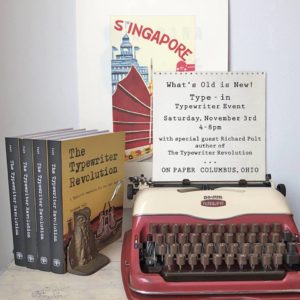 On Paper will feature “TYPE-IN,” a free typewriter event during the November Gallery Hop. On Paper will display their collection of antique typewriters, all beautifully repaired and available for sale. They will have signed copies of The Typewriter Revolution for sale and author and typewriter titan Richard Polt will be in attendance to offer a bit of coaching about your machines. Be sure to bring along your favorite typewriter if you have one.