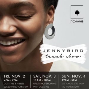 Rowe will feature an exclusive Jenny Bird Trunk Show during the November Gallery Hop.
