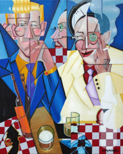 Marcia Evans Gallery will feature HARRY WOZNIAK…RETROSPECTIVE throughout the month of November. Wozniak created his style of painting and called it “fractured images.” Since 1983, he has been using early 20th Century Modernism and Cubism as a springboard to create a visual language of fragmentation, dislocation, movement and energy in his people vignettes connecting his love of Art Deco and 1940’s aspects of life. His paintings take on a totally unique life of their own. Wozniak’s work will be on view through November 30.