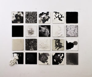Lindsay Gallery is featuring Vinyl Moments, a show of Bill Miller’s new work in vintage linoleum flooring.